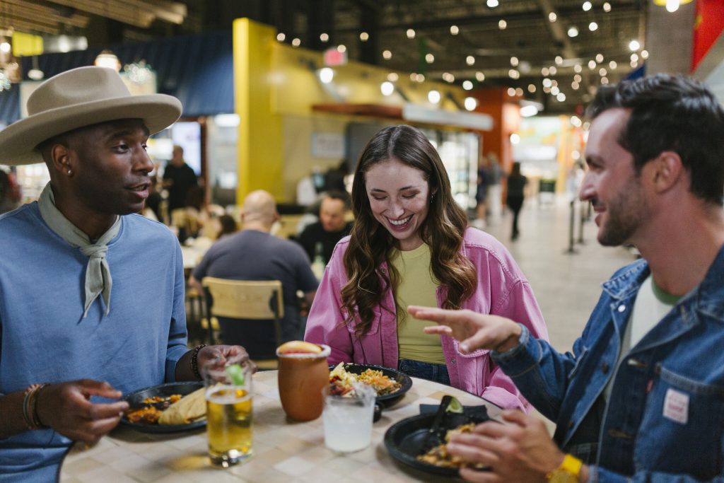 It doesn’t have to be all designer names and splurges, though. Just down the street, but feeling like it’s another world, is the LAB Anti-Mall, a refreshing twist on retail sameness. “LAB” stands for “Little American Businesses,” which gives a hint for what to expect: independent retailers with unique finds. A huge part of the fun of the LAB is getting to explore a cool, industrial space with art installations and photo-worthy corners at every turn. But the shopping is number one: Browse vintage pieces at Buffalo Exchange, grab something fresh and plant-based at Seabirds Kitchen, or hunt for sustainable fashion (and zero-waste refills) at Eco Now.